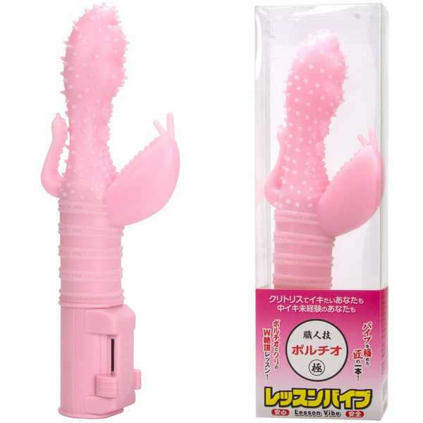安全エラストマー素材で作られた、ポルチオ&クリトリスを同時に刺激する3点責めバイブが登場!「レッスンバイブ(ポルチオ)」と銘打ち、3つのモーターと6Vパワーで繰り出される振動やスイングにより、瞬く間に快感へと誘います。