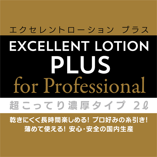 エクセレントローションプラス「150mlタイプ(v01908)」「360mlタイプ(v01905)」に2Lペットボトル容器にたっぷり入ったお得な大容量サイズか登場!糸引きはプロ仕様で安心度の高い日本製♪好みに合わせて薄めて使用することも可能です。